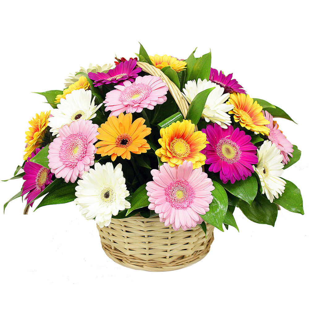 - Цветы в корзинке «Микс гербер» - с круглосуточной бесплатной доставкой в Аксае.